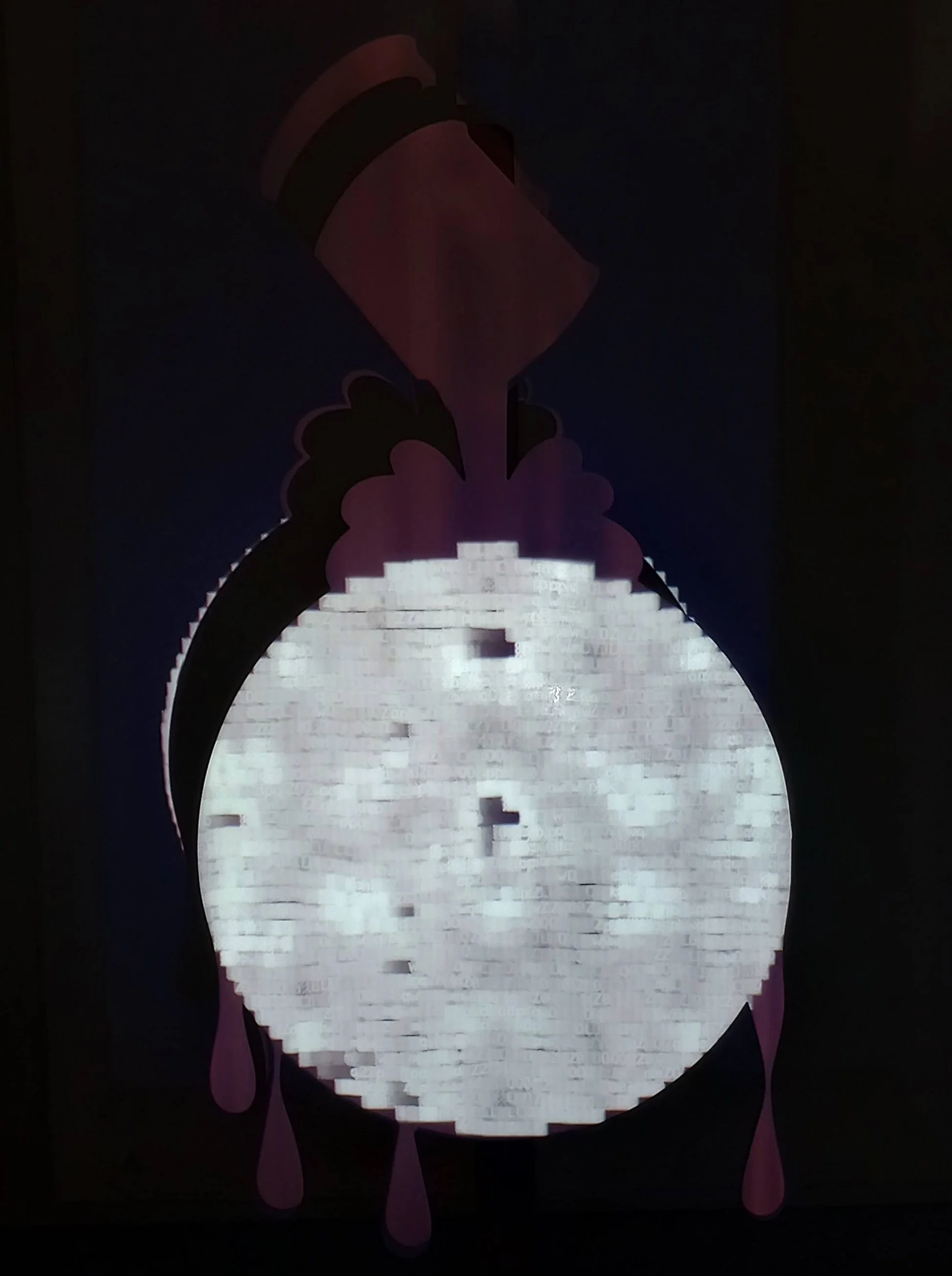 Flood the Night installation view (2025) ASCII generative animation and GLSL shader