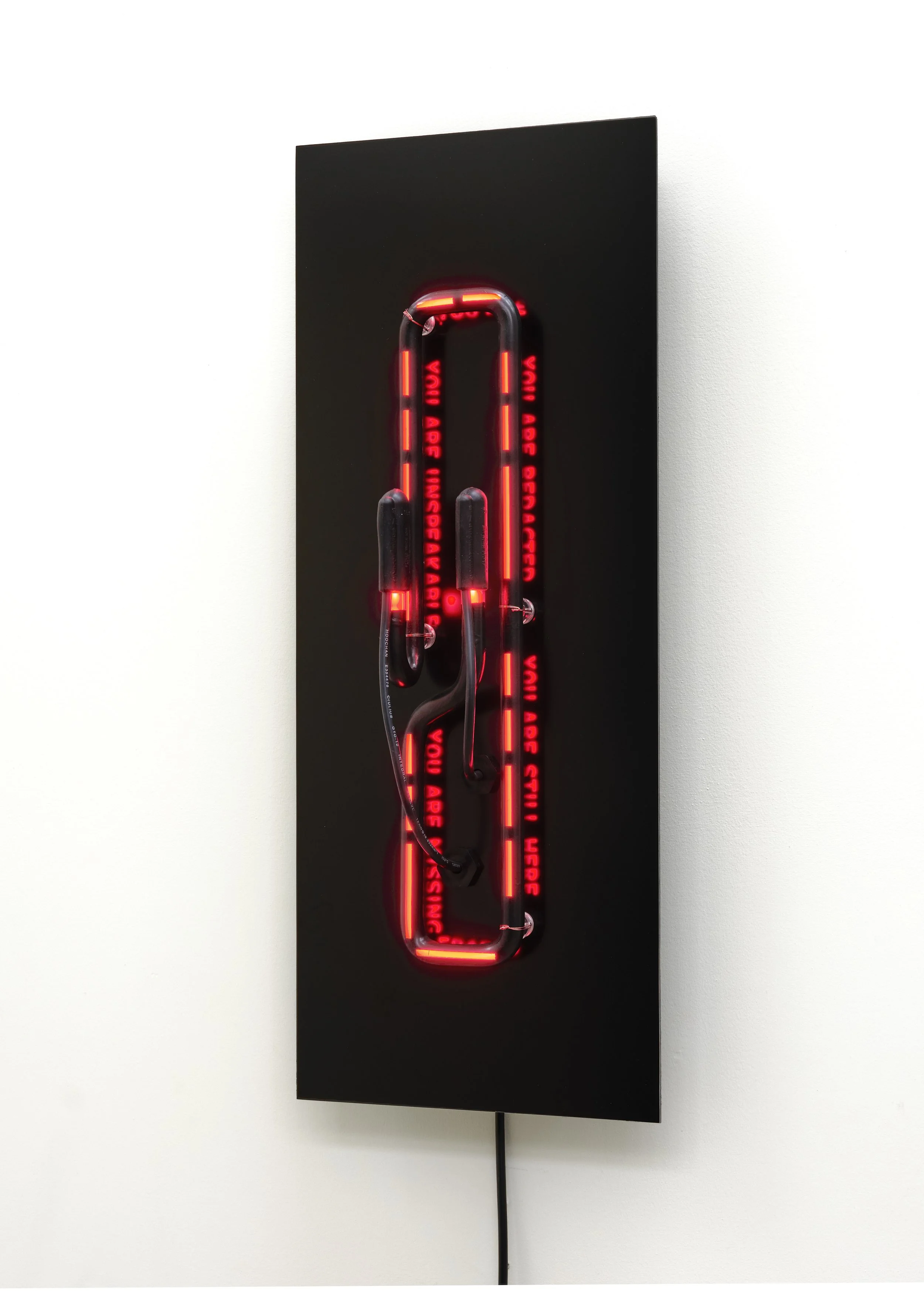 Alpha Tree front right with neon and projection based collaboration with Yale Wolf upper left (2025) ASCII generative animation